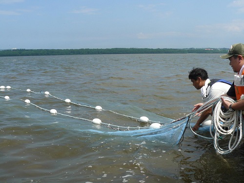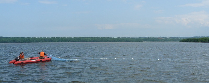・袖網を3㎜以下の細かい網目にすると、水の抵抗が大きくなり、2人では曳けないでしょう。